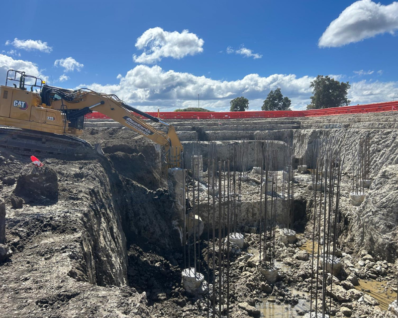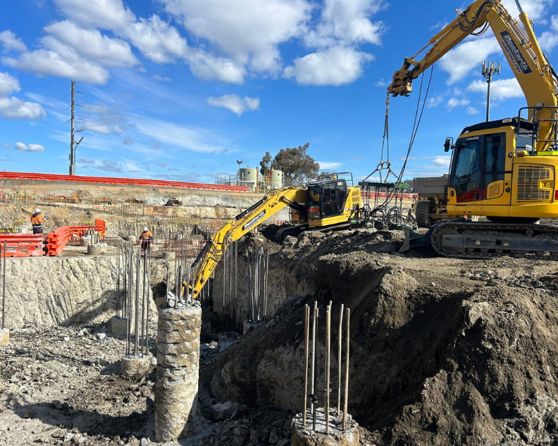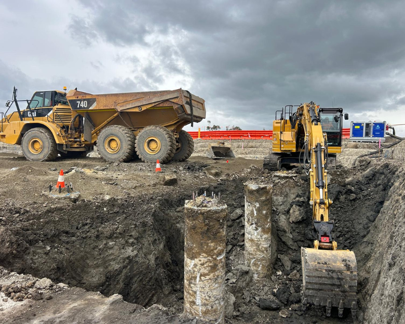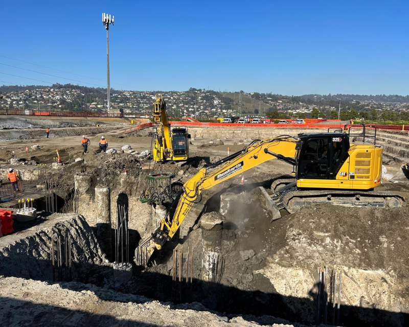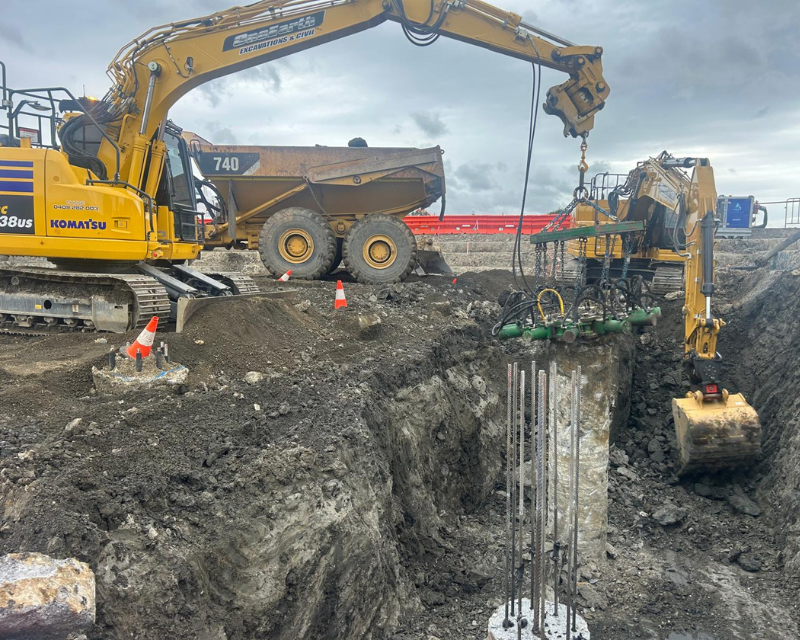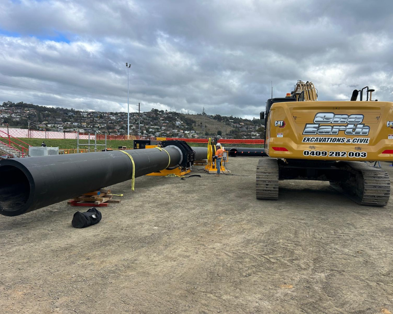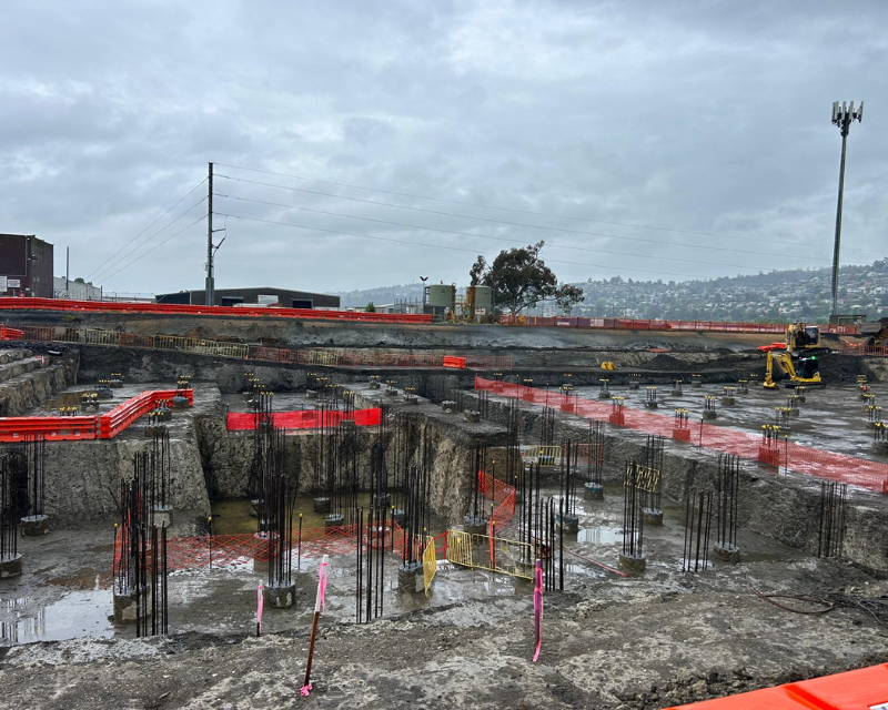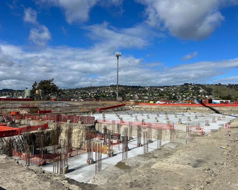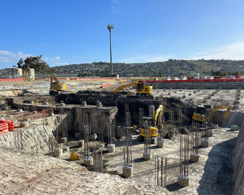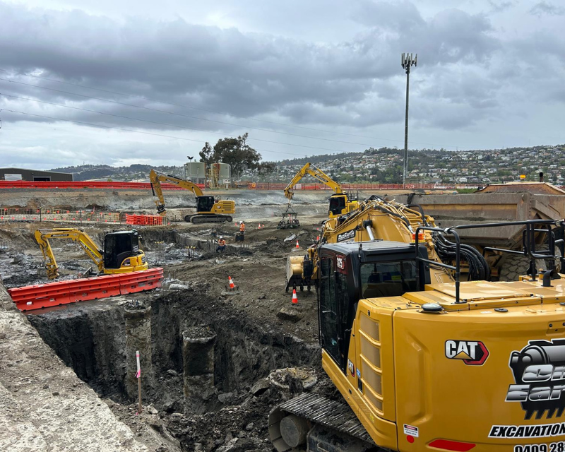 One earth was the preferred contractor to undertake bulk earthworks and detailed excavation of the Launceston sewer storage tank, the works included excavation and removing existing dam wall infrastructure install crane pad and hardstands, the main detailed excavation tank area approximately 9 metres deep with extensive vertical drops and grades throughout including cropping of 60 piles reinforced concrete piles using a hydraulic pile cropper attached to an excavator. Total earthworks volume 26000 cubic meters.